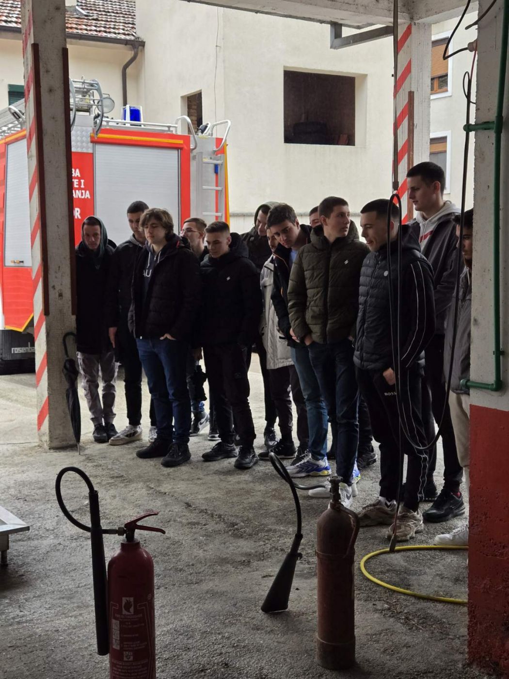 Na kraju, komandir je učenicima pokazao kako se gasi požar sa CO2 i prahom, svi učenici su učestvovali u vježbi gašenja vatre.